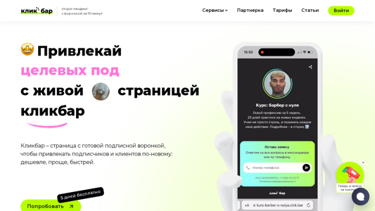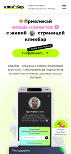 | AI-анализ | The website "Кликбар" is a landing page constructor with an autowheel for creating mini-landings in ten minutes. It offers a new way to attract subscribers and clients by providing a pre-made subscription wheel. Users, including blog authors on Telegram, can create simple autowheels on Telegram with progress bars based on the product or channel subscription price. The platform is particularly useful for individuals or small businesses looking to attract clients with minimal investment in advertising. The website also offers the ability to add a description and contact information, as well as stories for sharing information about services or products. |