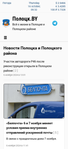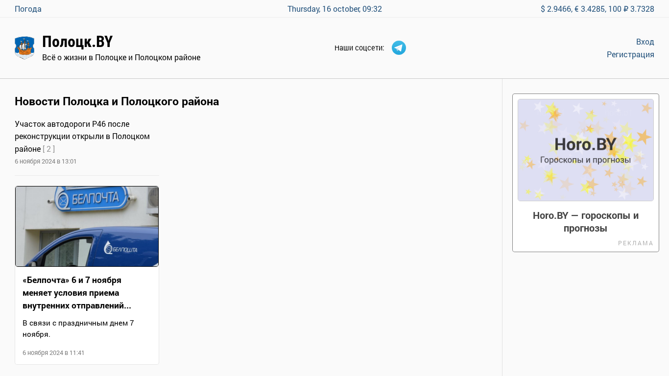 | AI-анализ | --- This website, Polotsk.BY, is dedicated to all aspects of life in Polotsk and the Polotsk region. It serves as a community platform, providing information on events and news in Polotsk and the surrounding area. The website covers topics such as work, classifieds, and leisure activities. Recent updates include the opening of a section of the R46 highway in the Polotsk region, changes to Belpost's acceptance conditions for internal mail in November 2024, and news about the harvest in Belarus. Other topics include the death of the chief editor of the Narodnaya Gazeta, updates from the Republic of Belarus' Ministry of Education regarding centralized exams and tests in 2025, and a tragedy involving two elderly fishermen in the Rosson region. Additionally, Belarusians are invited to participate in the Global Atomic Quiz |