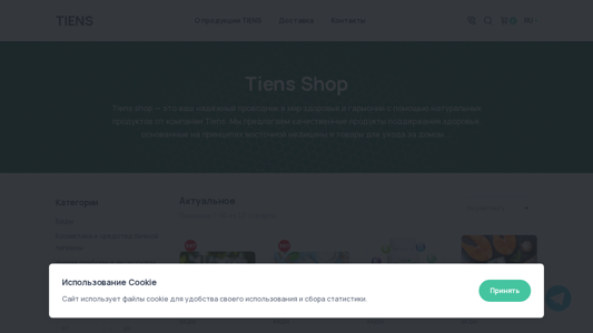 | SEO-описание | Tiens shop — это ваш надёжный проводник в мир здоровья и гармонии с помощью натуральных продуктов от компании Tiens. Мы предлагаем качественные продукты поддержания здоровья, основанные на принципах восточной медицины и товары для ухода за домом.... |