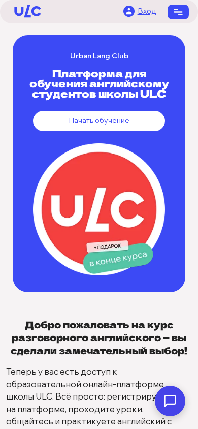 | SEO-описание | Регистрация на курс разговорного английского онлайн от школы ULC. Авторские видео, понятная грамматика, тесты. Выдаем сертификат в конце! |