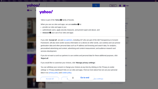 | AI-анализ | The website uk.yahoo.com is part of the Yahoo family of brands, which includes Yahoo, AOL, Engadget, In The Know, and Makers. When visiting the site, cookies are used to provide and improve the services, authenticate users, apply security measures, and prevent spam and abuse. Data, such as the number of visitors and the type of device used, is collected for measurement purposes, but is not tied to specific users. Users can choose to accept all cookies and personal data collection, or reject all, and can manage their privacy settings for more control. |