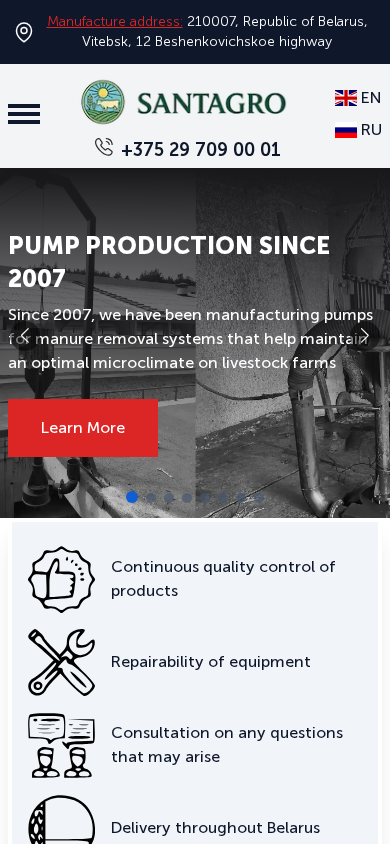 | SEO-описание | Development, manufacturing of pumps and manure removal systems. We offer a wide range of specialized equipment, primarily focused on maintaining a favorable microclimate and comfortable conditions in livestock farms. |