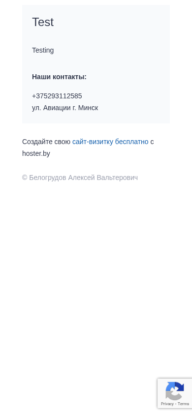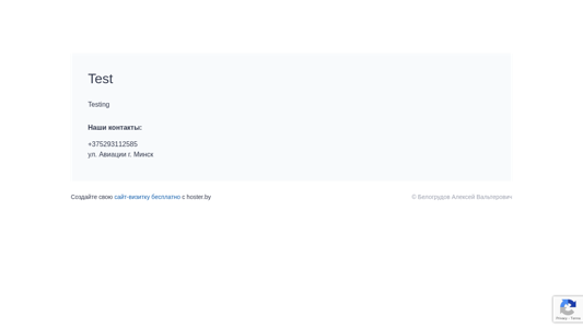 | AI-анализ | The website 'vtonere.by' is dedicated to providing testing services. The description of the website mentions the words "testing" and "проверьте" (test) multiple times. The contact information provided includes a phone number, street address in Minsk, and an invitation to create a website-business card for free with hoster.by. The website offers a form for users to submit their contact information, including their name, phone number, email, and a message. Upon successful form submission, users receive a confirmation message. The website is owned by Aleksey Valtevich Belogruдов. |