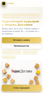 Название / Заголовок | ZIMBO — Работа курьером Яндекс Доставке |