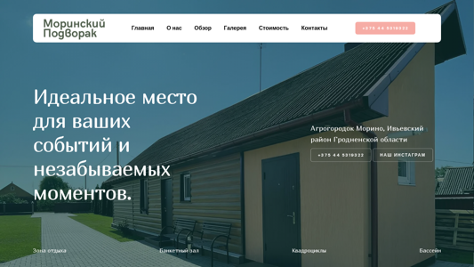 | AI-анализ | This website is an offer for renting the "Morinsky Podvark" estate for various events and vacations. Located in the Ivievsky region, Grodненskaya oblast, Belarus, it provides a peaceful environment with nature and modern comfort. The estate offers a range of recreational activities, including a billiard room, a cozy relaxation zone, a swimming pool, and the opportunity to ride quad bikes. The estate also has a spacious banquet hall suitable for weddings, birthday parties, and corporate events. Additionally, there is a separate gazebo for more intimate gatherings. The estate aims to provide a full-service approach to year-round recreation. |