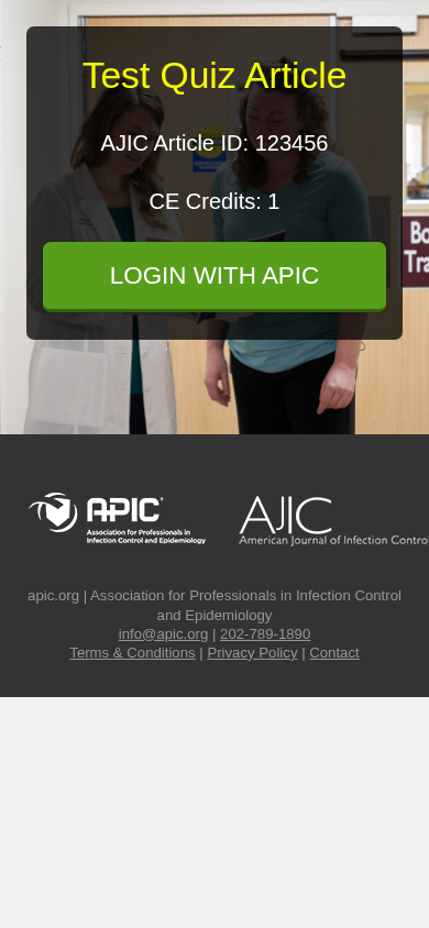 | AI-анализ | The portal AJIC Quiz is an online quiz created by the Association for Professionals in Infection Control and Epidemiology (APIC). Users are invited to take the quiz and answer questions related to various topics, including privacy, years in the profession, hours of sleep, favorite meal, and preference for dogs or cats. The quiz is presented in multiple-choice format with options to go back and change answers. The quiz results are not immediately visible, but users are asked to submit their recommendations for APIC based on the quiz experience. The quiz is accessible through the APIC website (apic.org) and is likely intended for professionals in the infection control and epidemiology field. |