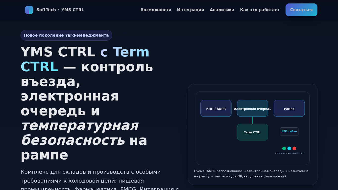 | Название / Заголовок | YMS CTRL — автоматизация логистики и температурный контроль | SoftTech |