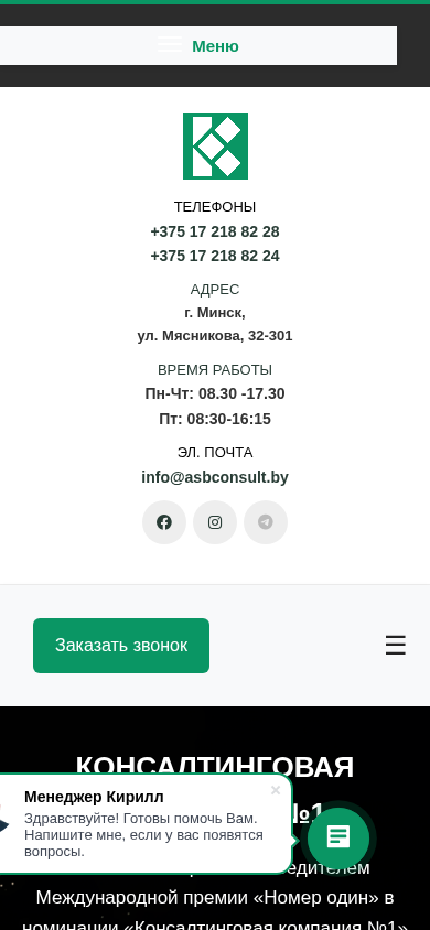 | SEO-описание | АСБ Консалт предлагает консалтинг в Минске и Беларуси по национальным и международным стандартам. ✓ Консалтинговая компания №1 в Беларуси. ✓ 10 лет на рынке аудиторских услуг. |