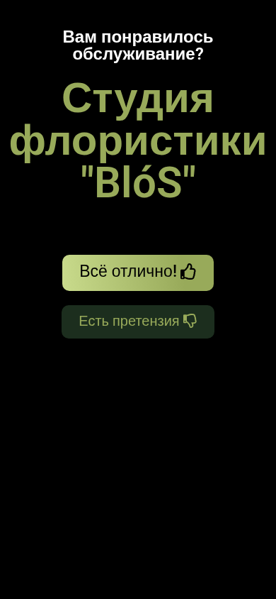 | SEO-лексика | вам понравилось обслуживание студия флористики отлично есть претензия |