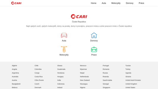 | AI-анализ | The website is a search engine for finding used cars, motorcycles, houses for sale, houses for rent, jobs, and job listings in the Czech Republic. The title and description of the website contain relevant keywords such as 'ojet' (used), 'pracovní místa' (jobs), and 'České republice' (Czech Republic). The top words indicate a focus on 'ojet' vehicles, 'domy' (houses), and 'pracovní místa' (jobs). The menu includes sections for cars, motorcycles, houses, and jobs in the Czech Republic as well as various countries. The domain name is 'cari.cz'. |