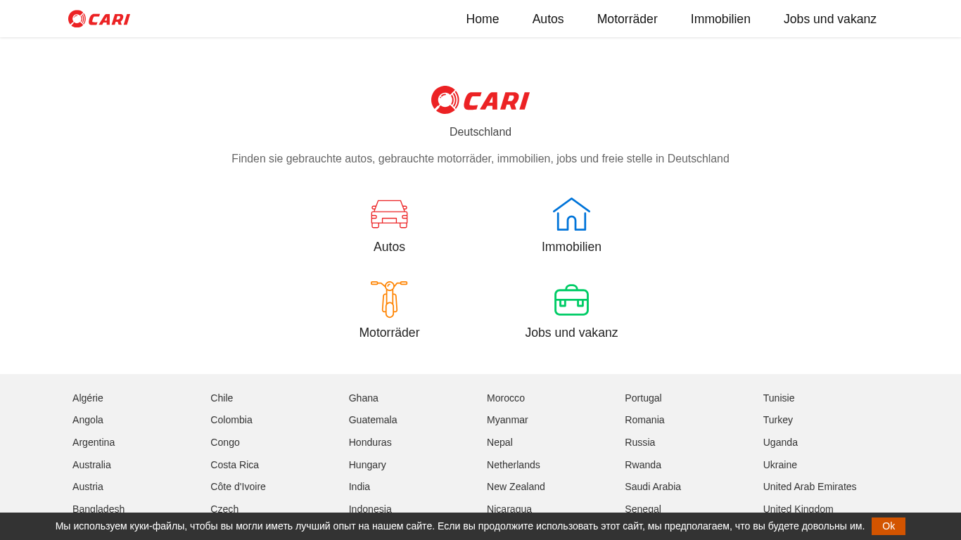 | AI-анализ | This website is a German-language marketplace for buying and selling used cars, motorcycles, real estate, jobs, and free positions in Germany. The title and description of the site both mention these categories, and the keywords support this, with words like "autos," "motorr," "immobilien," "jobs," and "deutschland" appearing frequently. The top words suggest that the site is aimed at helping users find these items and opportunities in Germany. The site includes sections for Autos, Motorräder, Immobilien, Jobs und vakanz, and allows users to search in various countries, including Germany and Algeria. The domain is cari.com.de. |