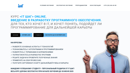 | AI-анализ | This online resource, titled "КУРС ONLINE ДЛЯ ТЕХ, КТО ХОЧЕТ В IT, И ХОЧЕТ ПONYATЬ, ПОДОЙДЕТ ЛИ ПРОГРАММИРОВАНИЕ ДЛЯ ДАЛЬНЕЙШЕЙ КАРЬЕРЫ" (Course Online for Tech-Savvy People Who Want into IT and Want to Understand if Programming is for their Future Career), is an educational platform offering a free introductory course in programming for individuals interested in IT but uncertain about their future career path or unsure of their abilities to learn and excel in programming. The course, which begins in October 2025, covers the basics of IT technologies, including algorithms and programming, terms and directions, and provides students with |