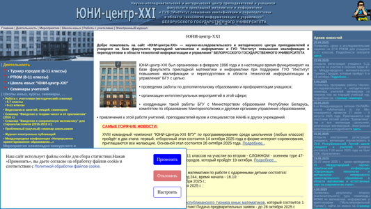 | AI-анализ | The web project "ЮНИ-центр-XXI" is a website primarily focused on mathematics education for students from 5 to 11 years old and mathematics research for older students. The website uses cookies for statistical data collection and hosts various mathematics competitions, including city, regional, and international tournaments, as well as Olympiads. It provides resources for teachers such as seminars and workshops. The website also offers an electronic journal for publications and hosts various conferences and research contests. The domain is uni.bsu.by. |