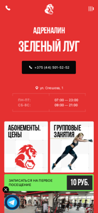 | Название / Заголовок | Адреналин в Зеленом Луге в Минске | Фитнес-центр «Адреналин» на Олешева, 1 |