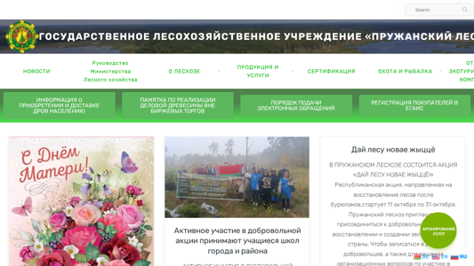 | AI-анализ | This website is dedicated to the State Forestry Enterprise "Pruzansky Leshoz" in Belarus. It provides information about the enterprise, its history, management, and various services and products related to forestry and hunting. The website features sections on news, forestry management, types of forests managed by the enterprise, and various forestry-related documents. It also offers information on protected natural areas, habitats of endangered species, and rare plant species. The website includes a section on forestry union and public inspectors, job vacancies, and a gimn and heraldic symbol. The main product and service categories include forestry products such as wood and pellets, transportation services, and various other forestry-related items. The website also offers certification for hunting and fishing, and information on hunting tours and accommodations. Additionally, it provides information on ecotourism and industrial tourism, as |