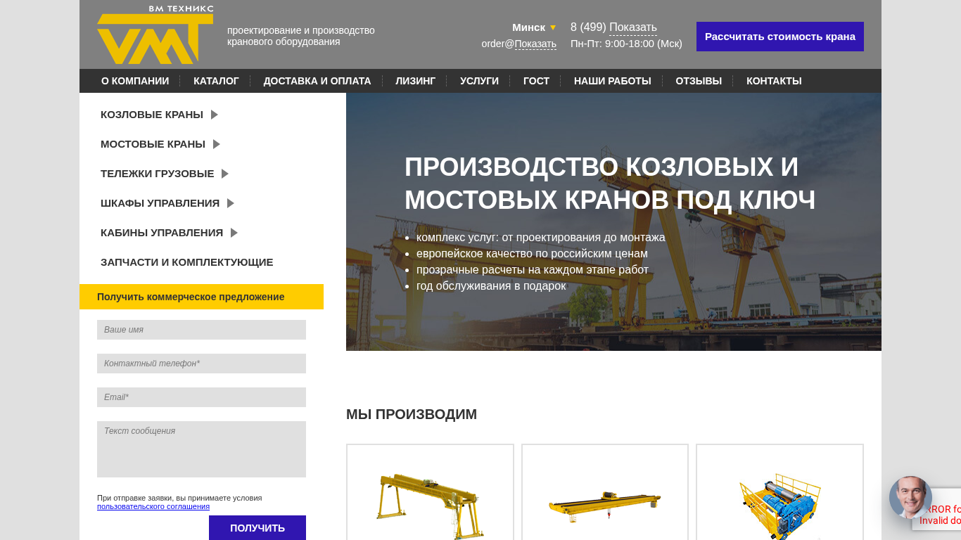 | Название / Заголовок | Производство козловых и мостовых кранов в Минске | Завод ВМ Техникс |