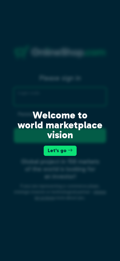 | AI-анализ | This online resource, titled "ONLINESHOP," is a global marketplace and project inviting investors. The description mentions the need for investors in the context of being present in 158 markets worldwide. The website appears to be focused on e-commerce and invites potential investors, strategic investors, or technological partners to get in touch. The homepage includes a call-to-action to sign in with a login code and password. |