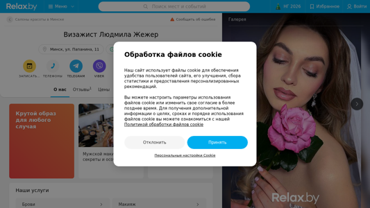 | AI-анализ | This website is a beauty salon page dedicated to Ludmila Zhezher, a makeup artist based in Minsk, Belarus. The address, operating hours, and contact numbers are provided, along with a map and directions on Relax.by. The website title includes keywords "визажист Людмила Жежер минск" (makeup artist Ludmila Zhezher Minsk), and the top words suggest topics such as makeup, reviews, booking, prices, and services. The page contains information about Ludmila's services, including day and evening makeup, bridal makeup, and men's makeup, with prices listed for each. The page also mentions her experience, which spans ten years, and her specialties as a brow artist and makeup artist. The website's design includes a photo gallery, customer reviews, and a section for booking appointments |