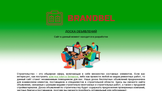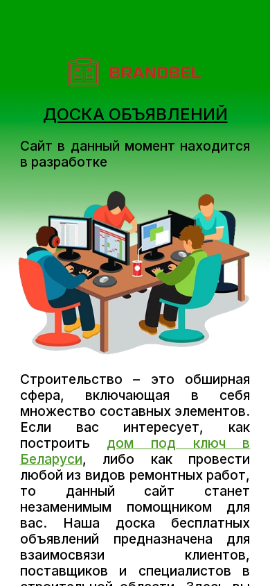 | AI-анализ | --- The portal brandbel.by is a construction and repair platform with a free ads section for Belarus and Minsk. It offers various construction works, electrical services, foundation pouring, key turn repairs and more. Users can post announcements or find contractors for any construction projects. The site is under development and will include a wide range of construction and montage works, as well as the sale of construction materials. The ads board will contain verified companies, private teams and suppliers, allowing users to choose the optimal option. Ads for construction works include: construction works, which cover a wide range of activities on construction sites: building, restoration, reconstruction, extension of various types of buildings and structures, development and installation of under-crane ways, installation of external engineering communications, construction of bridges, embankments, foundation and support structures, landscaping and more. Roofing works are an essential part of construction, capital |