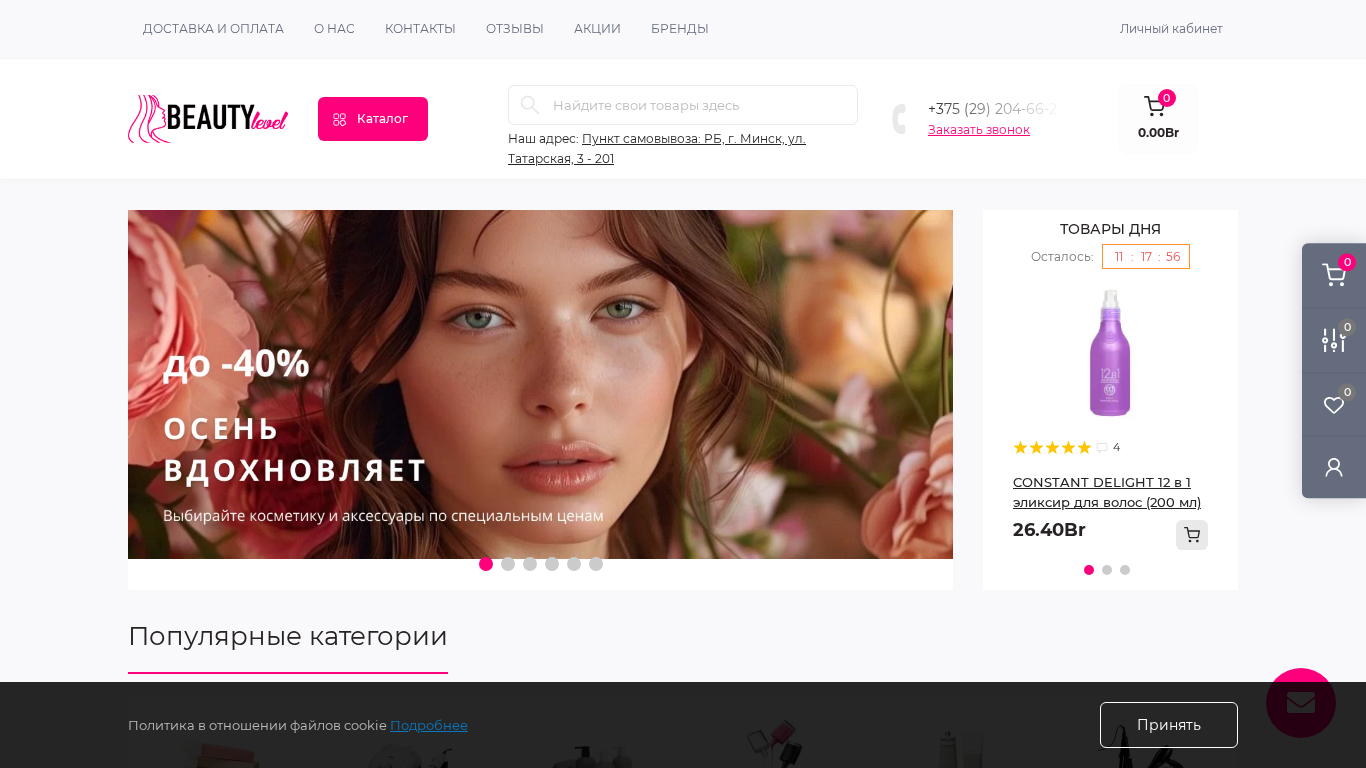 | SEO-описание | Купить косметику в Минске и Беларуси в Beauty-level можно не выходя из дома. Профессиональная косметика с доставкой по Минску и всей Беларуси. |