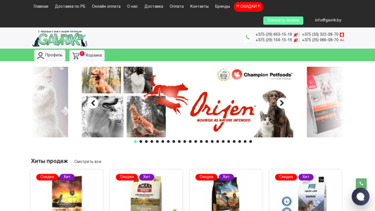 | SEO-описание | Магазин зоотоваров в Минске - Гаврик бай ❱❱❱ Сухие и влажные корма для собак и кошек, акссессуары для выгула, кормления и отдыха, а так же многое другое ✔️ Бесплатная доставка на дом ☝ 100% качество товара ✅ 8029 663-15-16 ☎️ |