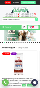 | AI-анализ | --- The portal is an e-commerce website specializing in pet supplies with delivery in Minsk, Belarus. The online store offers a wide range of products including dry and wet food for dogs and cats, accessories for walking, feeding, and relaxation, cages, hutches, and various other items. The website guarantees free home delivery and promises 100% product quality. Key product categories are dry and wet pet food, accessories, hygiene and grooming items, and protective gear against parasites. The website also features brands, sales, and a catalog of products. The top searches on the website include shopping cart, packaging, availability, models, corn, producer, availability, quantity, price, eat, buy, click, dry, dog, discount, hits, and Ambrosia Adult Chicken & Veggies. The website has a contact section with phone numbers for different departments and a registration |
