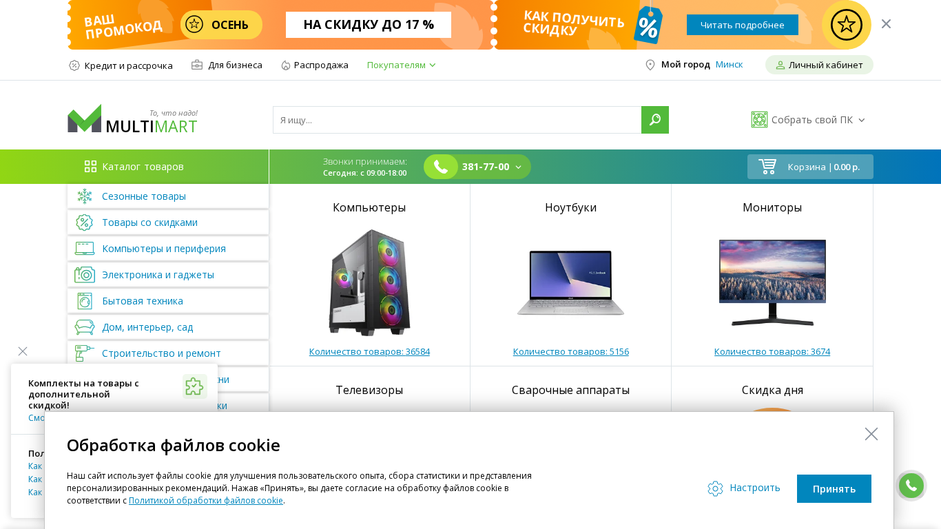 | SEO-описание | Онлайн-гипермаркет техники и товаров для дома — компьютеры, климатическая техника, товары для детей и многое другое по доступным ценам. Рассрочка 0%. Карты Халва, Черепаха, Смарт карта, Карта покупок. Доставка по всей Беларуси! |