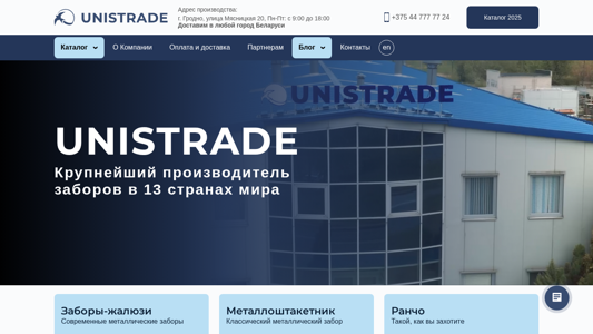 | SEO-описание | Купить металлический забор в Минске по цене производителя ЮнисТрейд ✅Недорого ✅Рассрочка от 6 и 9 месяцев на изготовление забора для дачи и дома ⏩Быстрая доставка по всей Беларуси, 100% гарантия качества ☎+375 (44) 777-77-24 |