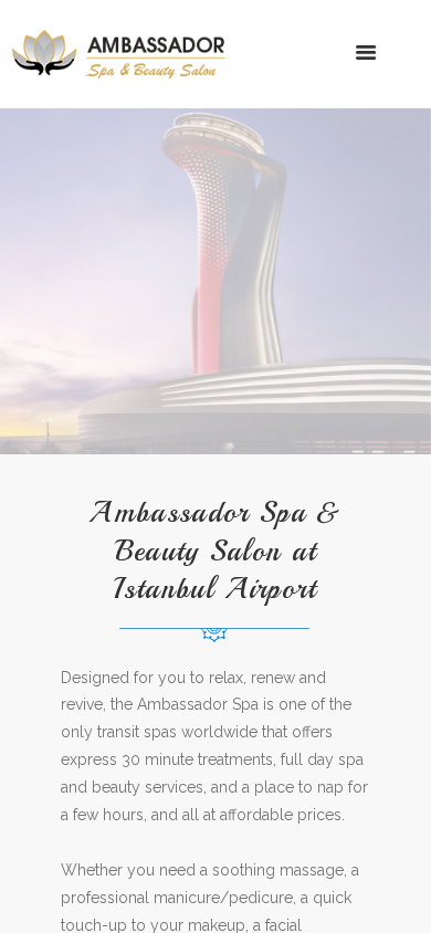 | SEO-описание | The Ambassador Spa & Beauty Salon Istanbul Airport in Istanbul Airport is one of the few transit spas worldwide that offers an extensive range of spa & beauty treatments under one roof. |
