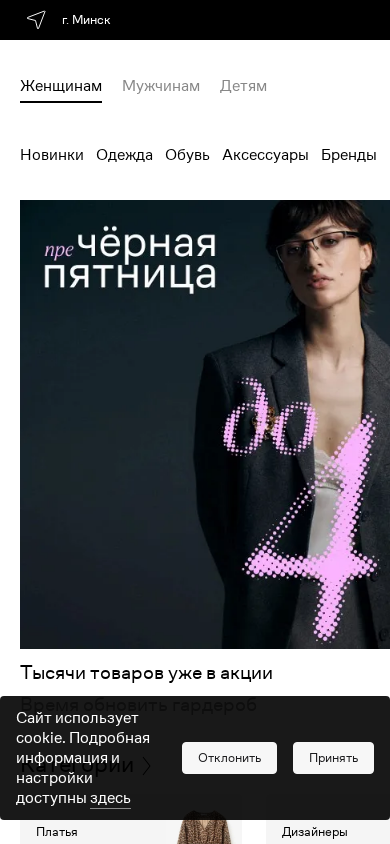 | AI-анализ | This online resource is an e-commerce website named Lamoda.by, based in Minsk, Belarus, specializing in the sale of women's clothing and footwear. The website offers thousands of models of branded women's shoes and apparel in various sizes with free shipping in Belarus. Customers have the option to order with a delivery fitting room service, where they pay only for the items that fit and return the rest. Lamoda provides three payment methods: online payment on the website and app at the time of order placement; payment upon receipt of the order; and payment in installments. Users can log in, access their cart, and browse categories for women, men, and children, featuring clothing, footwear, accessories, premium brands, sportswear, and more. The website offers numerous discounts and sales, and customers can build their collections according to various styles and trends. The |