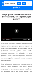 | Название / Заголовок | Как устранить вой насоса ГУР и восстановить его нормальную работу |