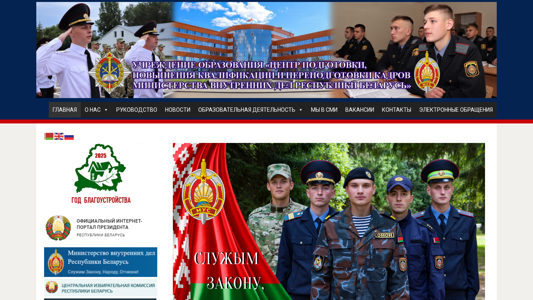 | AI-анализ | The portal is the official website of the Center for Training, Enhancement, and Retraining Personnel of the Ministry of Internal Affairs (MVD) of the Republic of Belarus. The website provides information on the conditions of study and living, history, social organizations, officer's assembly, veteran organization, trade union organization, and youth organization of the center. It also offers details on the educational programs, cycles of social and legal disciplines, tactical-special training, special disciplines, physical training, firearms training, and dog training. Additionally, the site features information for recruiting personnel, professional development, initial and specialized training for dog handlers, and various courses. The website contains news, educational activities, and contact details for electronic inquiries. The site was updated on October 16, 2025, with a visit from students of Gymnasium No. 4 in M |