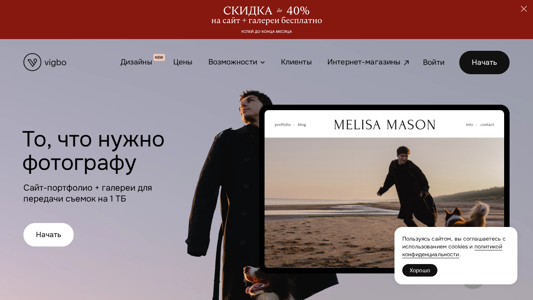 | Название / Заголовок | Vigbo — первый сервис для фотографов: сайт-портфолио, галереи для передачи фото, интернет-магазин |