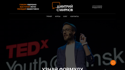 | AI-анализ | --- This online resource is dedicated to effective communication and public speaking. The website offers various courses, including an offline course titled "Говори! Убеждай! Влияй!" with ten practical sessions in Minsk and an online course with ten blocks and individual feedback from the trainer. The website also provides corporate training programs and offers remote individual sessions. Dmitry Smirnov, a speaker coach, journalist, and radio host with 16 years of journalism experience, 15 years on radio, and 10 years of teaching, is the founder of the school. He has interviewed over 2000 guests in live broadcasts, allowing him to test communication theories and select effective techniques. The website also features testimonials from satisfied clients. The website's address is govorite.by. |