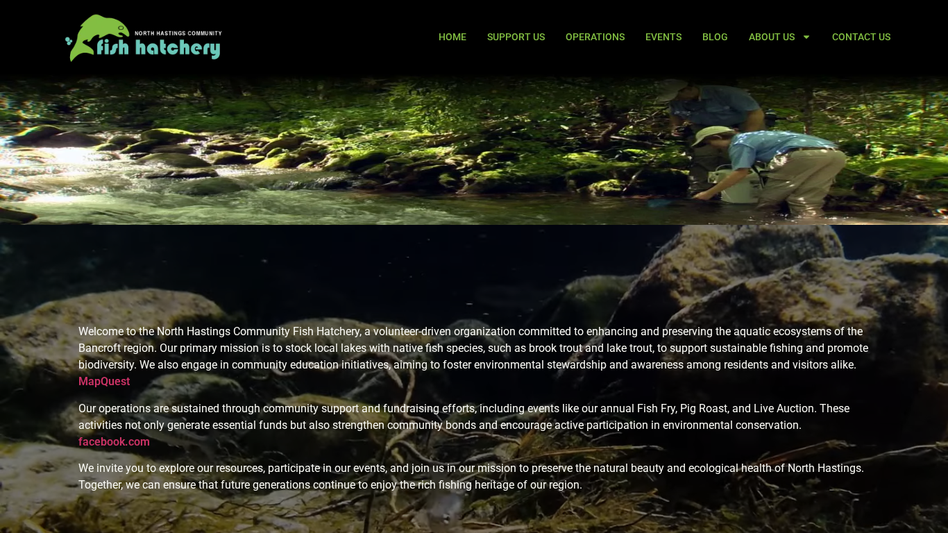| AI-анализ | This website is for the North Hastings Community Fish Hatchery, an organization dedicated to enhancing and preserving the aquatic ecosystems of the Bancroft region in Ontario, Canada. The website's main mission is to stock local lakes with native fish species, such as brook trout and lake trout, to support sustainable fishing and promote biodiversity. The hatchery is volunteer-driven and relies on community support and fundraising efforts to sustain its operations. Events like the annual Fish Fry, Pig Roast, and Live Auction generate essential funds and strengthen community bonds while encouraging active participation in environmental conservation. The website provides resources for visitors to explore, invites participation in events, and offers opportunities to join the hatchery's mission to preserve the natural beauty and ecological health of North Hastings. Donations and memberships are encouraged to support the hatchery' |