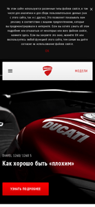 | AI-анализ | --- This website is dedicated to Ducati motorcycles available in Belarus. The title and description both contain the name "Ducati Беларусь" indicating its focus on selling Ducati motorcycles in Belarus. The website uses various types of cookies for analytics and collecting user data, which allows showing ads based on users' preferences. The homepage displays a selection of new Ducati models, including Diavel, XDiavel, Hypermotard, Monster, Streetfighter, Panigale, and Multistrada, along with their specifications such as horsepower, torque, and dry weight. Users can click on each model to learn more. |