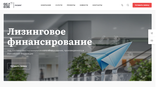 | AI-анализ | The website is a corporate site for BelVЕБлизинг, a company offering leasing services for high-tech equipment produced in the Russian Federation. The title is 'Главная' (Main), and the description tag reads 'Корпоративный сайт' (Corporate Site). Top keywords include 'лизинг' (leasing), 'финансирование' (financing), 'поставки' (supplies), and 'оборудования' (equipment). The company's contact information is provided, including a phone number, email address, and physical address in Minsk, Belarus. The website includes sections for company information, news, services, projects, and contacts. The company offers leasing and financing services for high-tech equipment. |