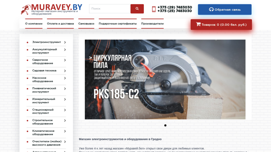 | SEO-описание | Добро пожаловать в интернет-магазин электроинструментов и оборудования МУРАВЕЙ.БЕЛ. У нас вы можете купить инструменты для любых нужд, более 5000 наименований товаров как в наличии, так и под заказ. Доставка по Беларуси. |
