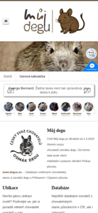 | AI-анализ | This online resource is dedicated to the hobby of keeping Osmák Degu, also known as Octodon degus. The website provides information about the breeding of both classic and colored variants of Osmák Degu. Keywords associated with the site include "Osmák degu," "Octodon degus," and various dates. The top words suggest sections for "Homes," "Videos," "Osmák in Breeding," "Links," and "Contact." The site also includes a "Genetic Calculator" and references to Napoleon Bonaparte. There are mentions of Facebook, Twitter, Pinterest, LinkedIn, and email for communication. The site features videos and information about specific Osmák Degu, such as "Moj Degu," which has 82 videos and 59,000 views. There are also sections for "Breeding |