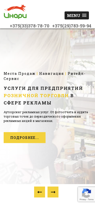 | SEO-описание | Производство рекламы. Размещение рекламы в ритейле. Изготовление, ремонт и обслуживание рекламных конструкций. Звоните +375(33)378-78-70 |