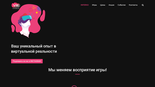 This website is for a virtual reality club named INFERNO VR located in Novopolotsk, Belarus. It offers virtual reality entertainment for families, adults, and children, as well as event organization. The website emphasizes immersive gaming experiences with high-definition graphics, comfortable play and sensor tracking technology, and innovative VR applications and games. The club also caters to children as young as three years old, and offers a cinematic 3D sound system. The website features a subscription to the INSTAGRAM account and information on the latest VR technology, including cordless game connection, motion freedom, and interaction with artificial intelligence. The website is available in both metric and imperial units, and has a map with data from 2025. There is no information on the number of people who have visited the website, the number of available games or game points, or the hours spent in games