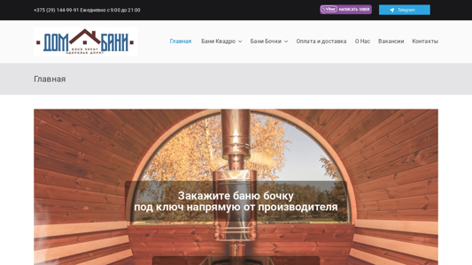 | AI-анализ | --- This website is for a Belarusian manufacturer and retailer of portable saunas, called DomBani.BY. The website offers various types of portable saunas, including Kvadro-Banias and Baňa-Bochkas, in different sizes ranging from 2 to 6 meters in length. The products are available with or without a terrace or a canopy. The website provides information on the dimensions, weight, and capacity of each sauna. The website also includes a section for payment and delivery information, as well as contacts and vacancies. The website is accessible daily from 9:00 to 21:00. The title of the website is "Баня-Бочка под ключ. От производителя в Беларуси" (Banya-Bochka under the key. From the manufacturer in Belarus) and |