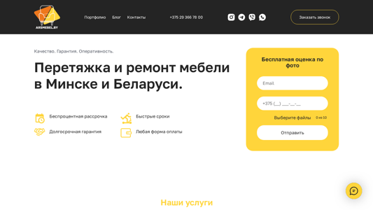 | AI-анализ | --- The web project "Ars Mebel" is a furniture repair and restoration service based in Slutsk, Belarus. The site includes a blog, portfolio, and contact information, with options to request a callback or send an email. The keywords include "mebel" (furniture), "byn" (Belarusian currency), and various phrases related to ordering, contacting, and appreciation. The site promises quality, guarantees, and quick turnaround, offering reupholstery and furniture repair in Minsk and Belarus, with options for financing and free estimates based on photos. The site's content emphasizes the artisanal approach of the team, which aims to restore both functionality and aesthetic appeal while preserving each piece's unique character and history. The site also offers consultations and estimates, with detailed proposals and agreements to be negotiated after initial assessment. The furniture types listed |
