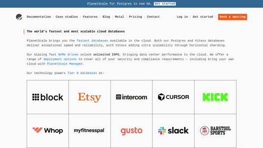 | Название / Заголовок | PlanetScale - the world’s fastest and most scalable cloud hosting for Vitess and Postgres |