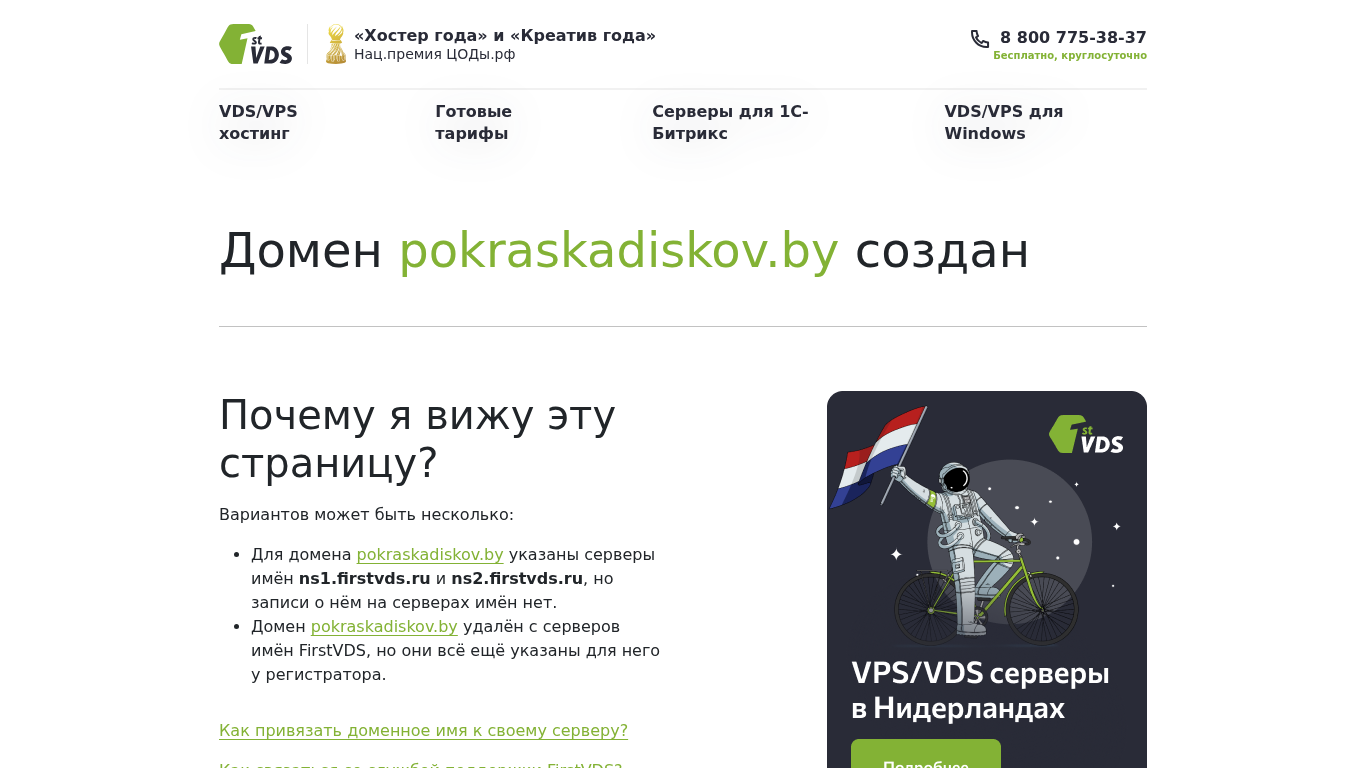 | AI-анализ | The web project pokraskadiskov.by is a hosting service website created by the 'Host of the Year' and 'Creative of the Year' award winner at the National CODies.rf event. The domain was created on FirstVDS servers and is currently protected from adding new records to prevent unauthorized use. Users who want to associate the domain name with their server need to contact FirstVDS support to verify ownership and gain access to their domain registrar. Instructions for attaching a domain name to a server using the ISPmanager panel and the DNSmanager server are provided on the website. The domain was created in the past, but its records are no longer present on the FirstVDS name servers. The website advises users to contact support for assistance in attaching the domain name to their server, and also provides a link to the FirstVDS FAQ for more information. |