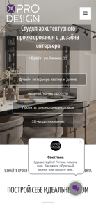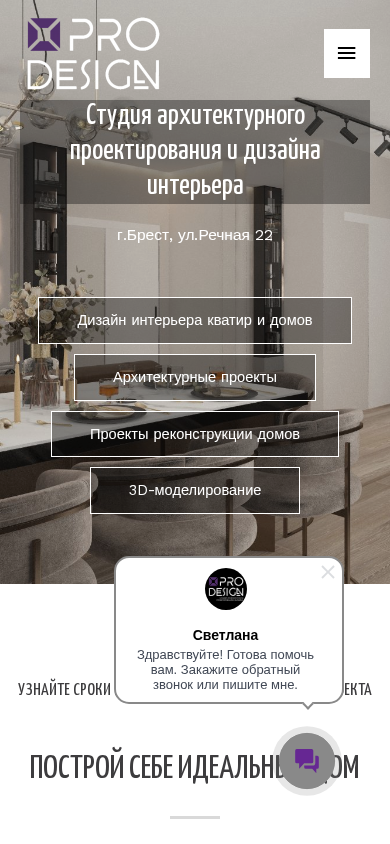 | AI-анализ | The website is a studio for architectural design and interior design called "ProDesign." The studio offers solutions for creating unique designs for homes or offices. The team consists of experienced designers and architects. Services include architectural projects, reconstruction projects, interior design, and 3D visualization. The studio also specializes in designing homes, cottages, offices, and their interiors and facades. Clients can inquire about the cost and completion time for their projects. The studio has completed over 400 projects since 2005 and has a high success rate. Clients can contact the studio for more information. The website provides a main menu with sections for the homepage, portfolio, contacts, and services. The services section includes architectural design, reconstruction projects, interior design, and 3D visualization. The studio also offers projects for expanding home size, adding an office, designing a kitchen, garage, |