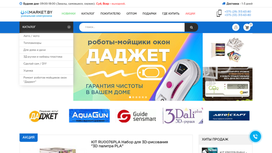 | AI-анализ | The portal Unimarket is an e-commerce website selling modern and intelligent technology and electronics in Belarus. It offers delivery across the country and features promotions and discounts. The website provides a quality guarantee. Key products include 3D pens and related accessories. |