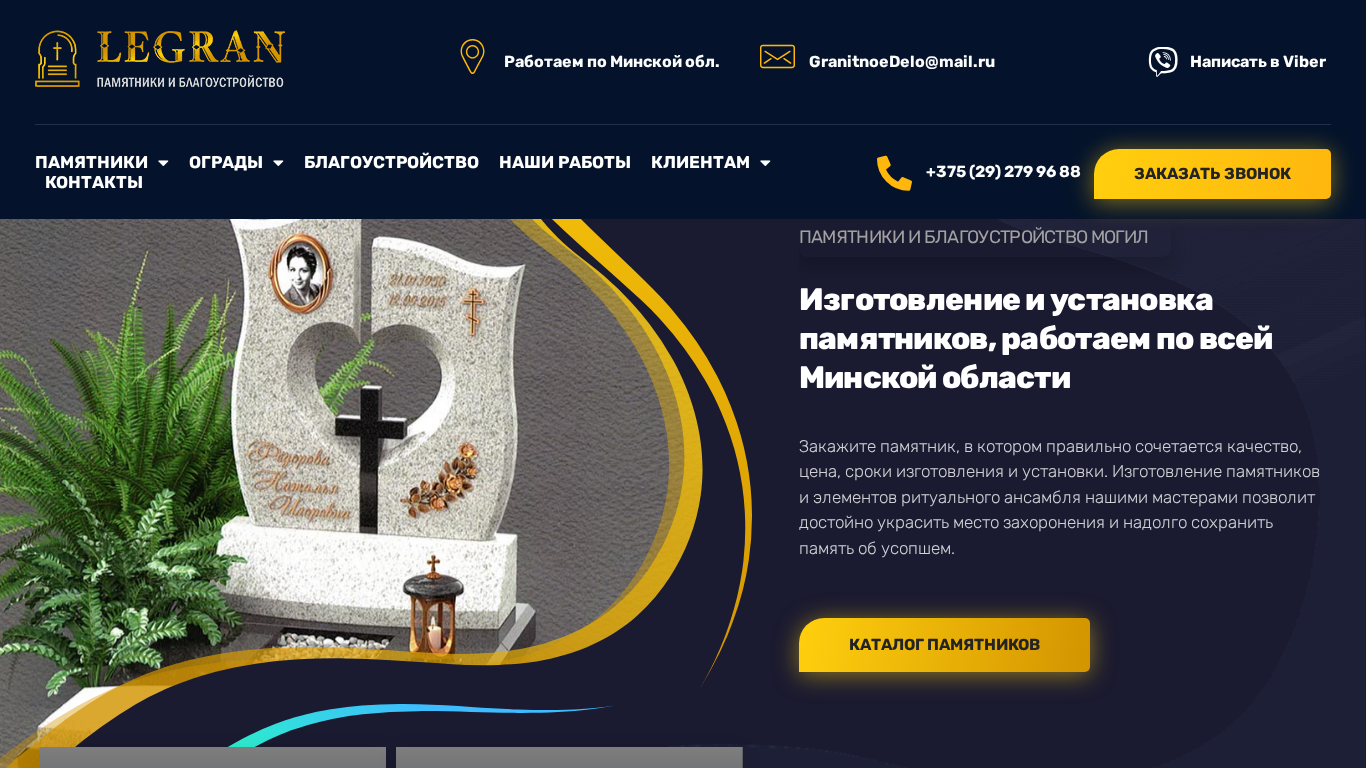 | SEO-описание | памятники и благоустройство могил Изготовление и установка памятников, работаем по всей Минской области Закажите памятник, в котором правильно сочетается качество, цена, сроки изготовления и установки. Изготовление памятников и элементов ритуального ансамбля нашими мастерами позволит достойно украсить место захоронения и надолго сохранить память об усопшем. Каталог памятников ПАМЯТНИКИ Button БЛАГОУСТРОЙСТВО Button ОГРАДЫ Button ОФОРМЛЕНИЕ Button LEGRAN […] |