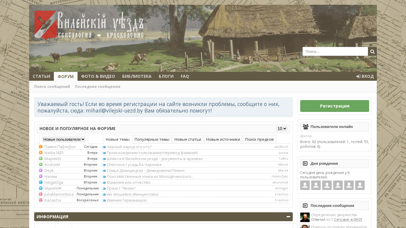 | Название / Заголовок | Вилейский уезд – генеалогия и краеведение. Архивы, история семьи, происхождение рода. Генеалогия Беларуси. |