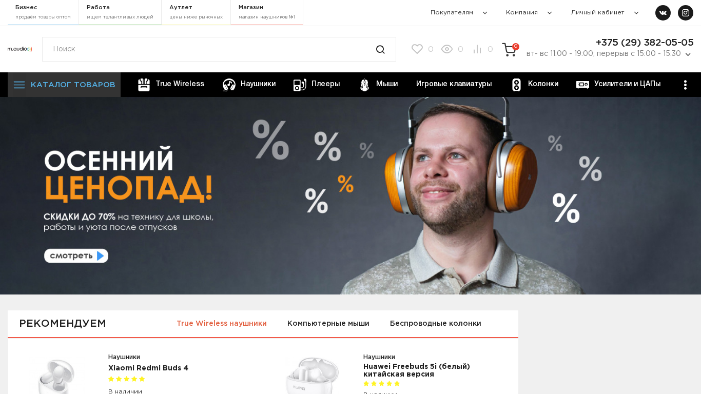 | AI-анализ | This online resource is the MAudio.by e-commerce website, dedicated to audio technology. The store offers a wide range of headphones: headphones for home use, headphones for players, for iPod, wireless headphones with microphone, headsets for iPhone, headphone amplifiers. The website's keywords include headphones for iPhone, wireless headphones, Bluetooth headphones with microphone, buying headphones for iPod, test headphone, review, headphone amplifier, headphone reviews, SONY, Sennheiser, AKG, Philips, KOSS, Beyerdynamic, Apple. The store also sells players and various audio equipment. The top search terms on the website are 'rub' (Russian currency), 'in stock', 'cart', 'gaming', 'mice', 'headphones', 'audio', 'players', 'amplifiers', ' |